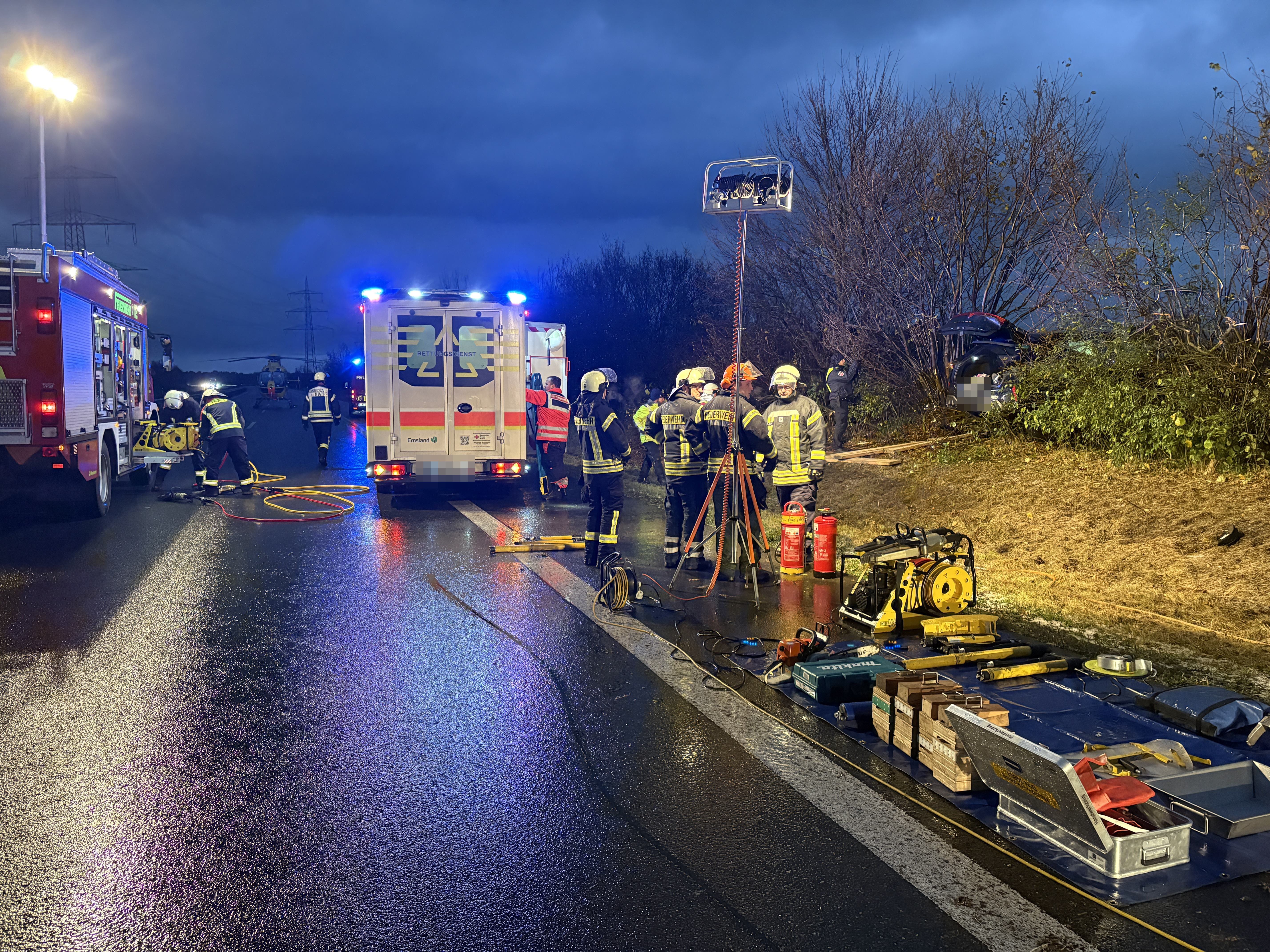 Neben der Feuerwehr waren der Rettungswagen des DRK Emsland aus Salzbergen, der Notarzt des Christoph Europa II aus Rheine sowie zwei Streifenwagen der Autobahnpolizei Lingen vor Ort.